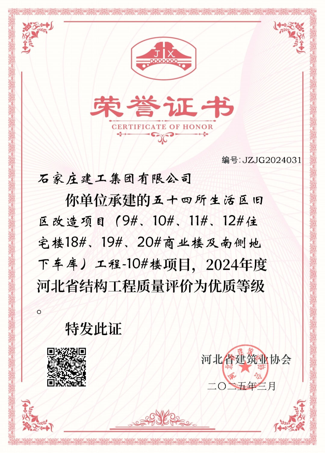 五十四所舊區(qū)改造項目9#樓、10#樓 榮獲河北省結(jié)構(gòu)優(yōu)質(zhì)工程獎2025-05-07 15:09:57